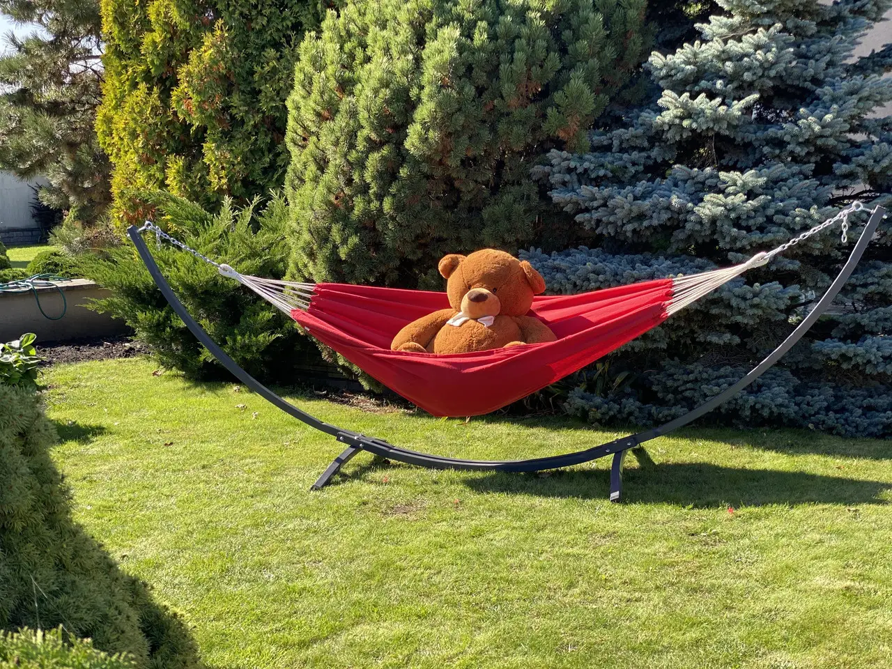 Ми є виробником цих гамаків і рам для них. З цього тільки у нас Ви зможете підібрати металеву раму під гамак, яка доступна в 6 кольорах! Для каркаса використовується добірний профіль товщиною 2 мм, який гарантує безпечне використання.